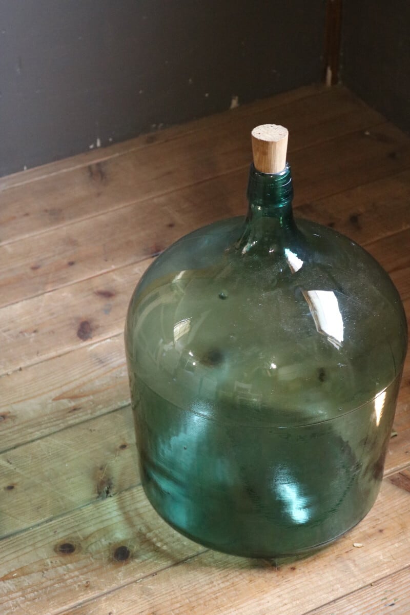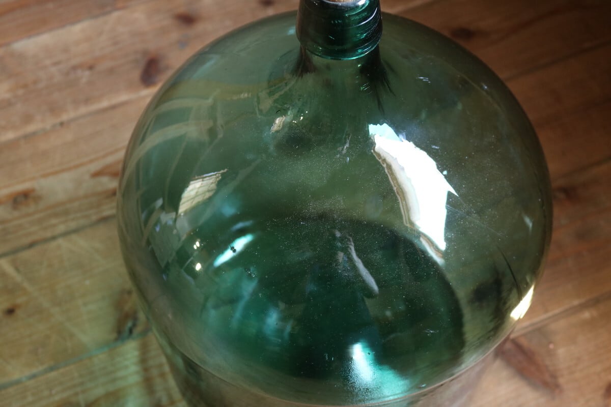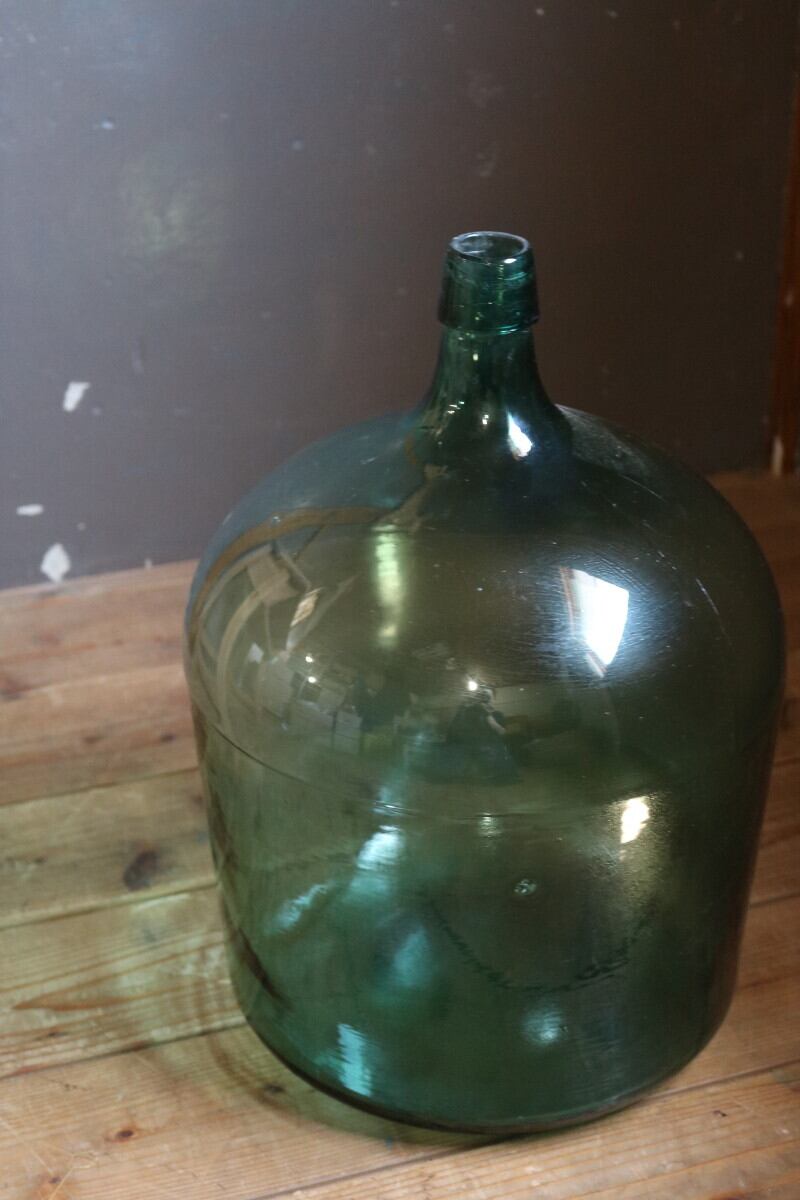 №062 デミジョンボトル ガラス瓶 グリーンガラス 花器 花瓶 アンティーク 古道具 54388