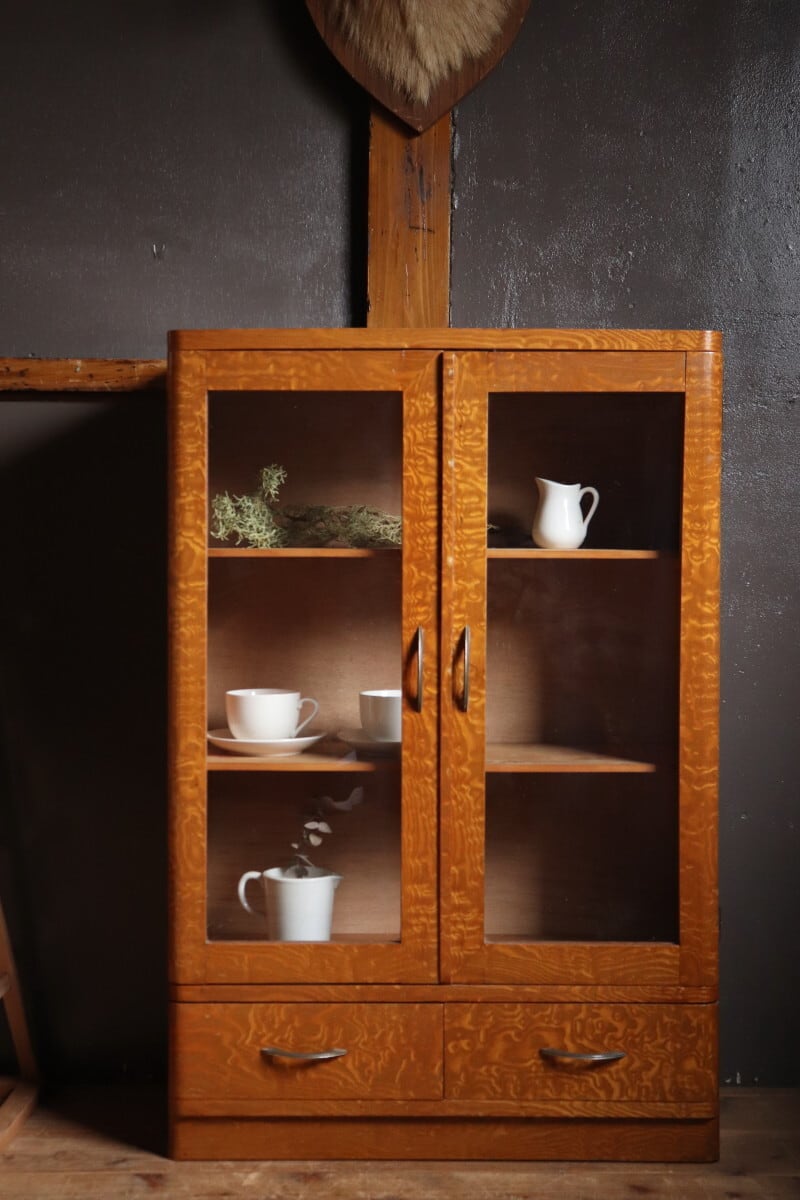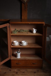 №084 木枠ガラス棚 飾り棚 陳列棚 アンティーク家具 食器棚 54477