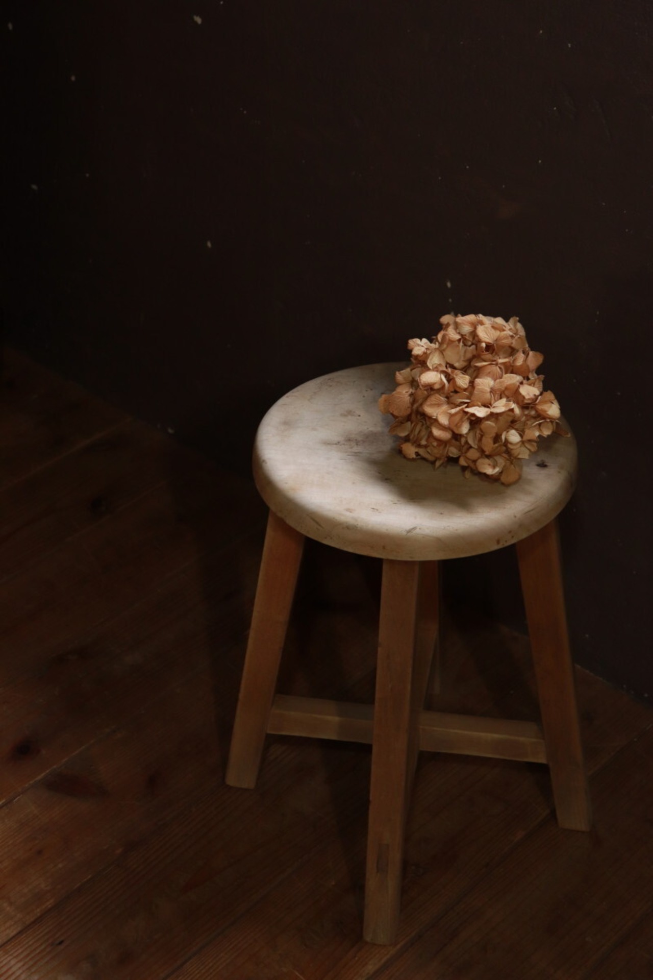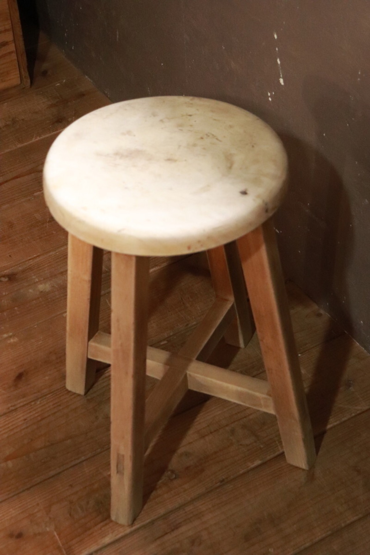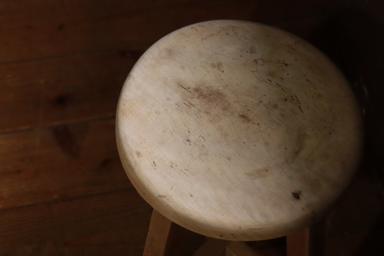木製丸イスになります。経年の汚れ、傷、擦れあります。