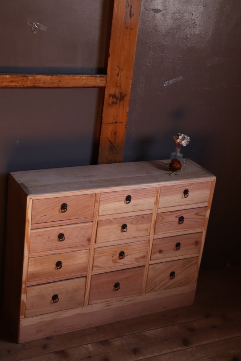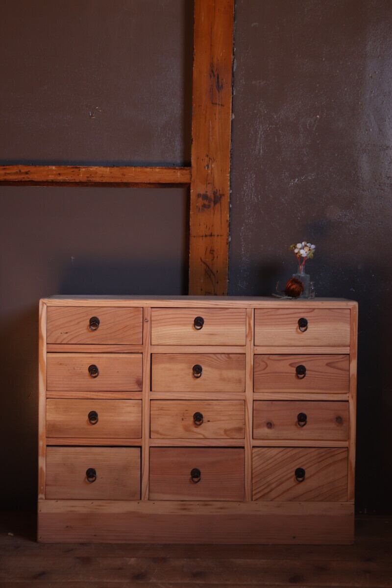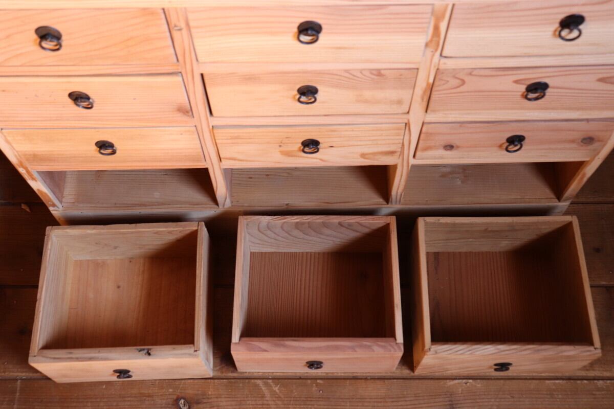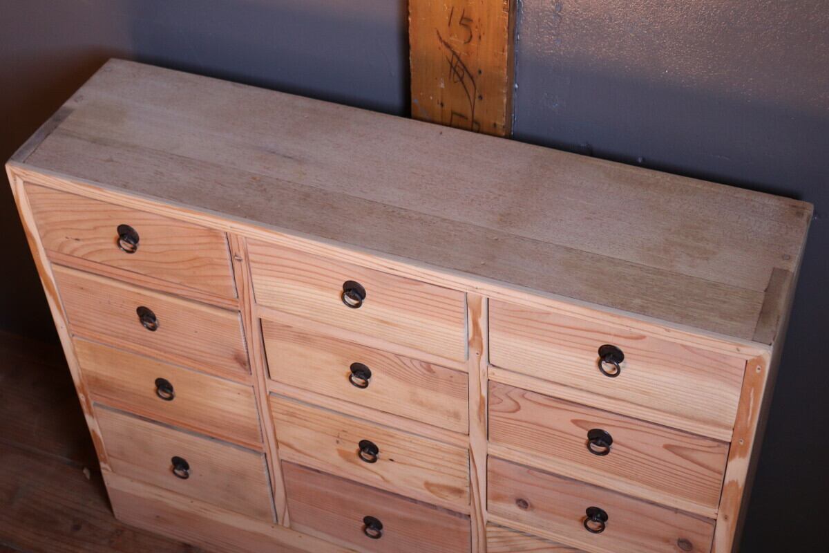 №127 木製小引き出し12杯 収納棚 道具箱 アンティーク家具 古道具